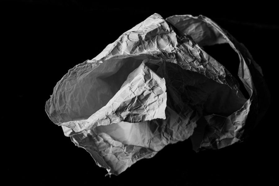 One light and one piece of paper, cut, torn and crinkled but still whole